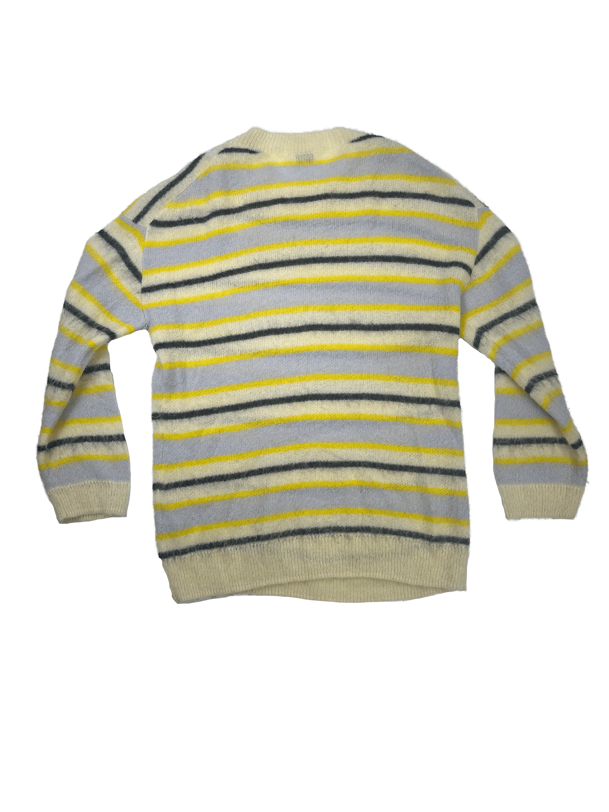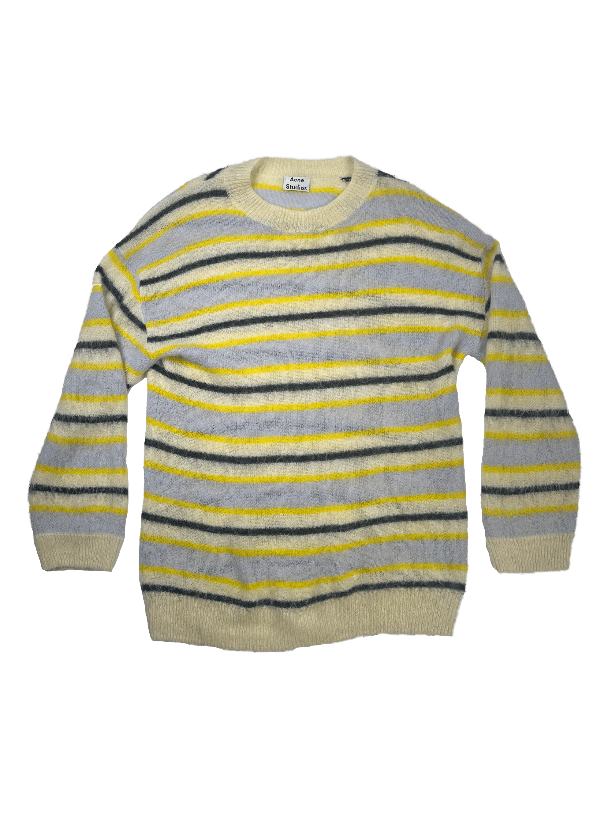 Acne Studios sweater in yellow, butter, black and mauve stripe
