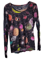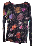 Semi sheer long sleeve boatneck t-shirt from KTZ with all over universe/ planet/ stars print