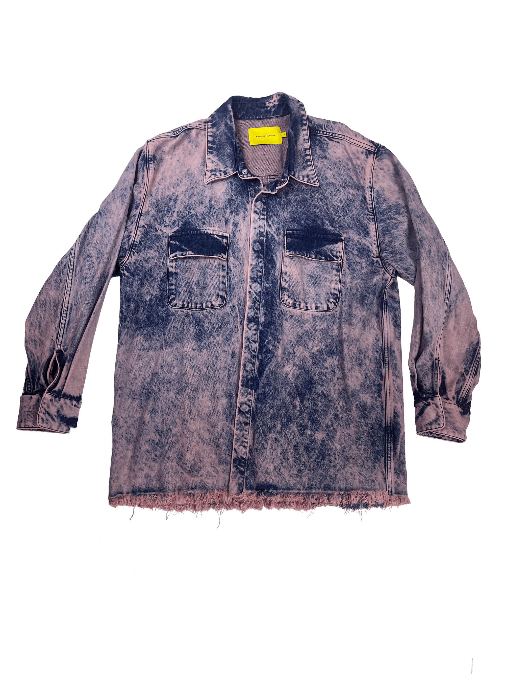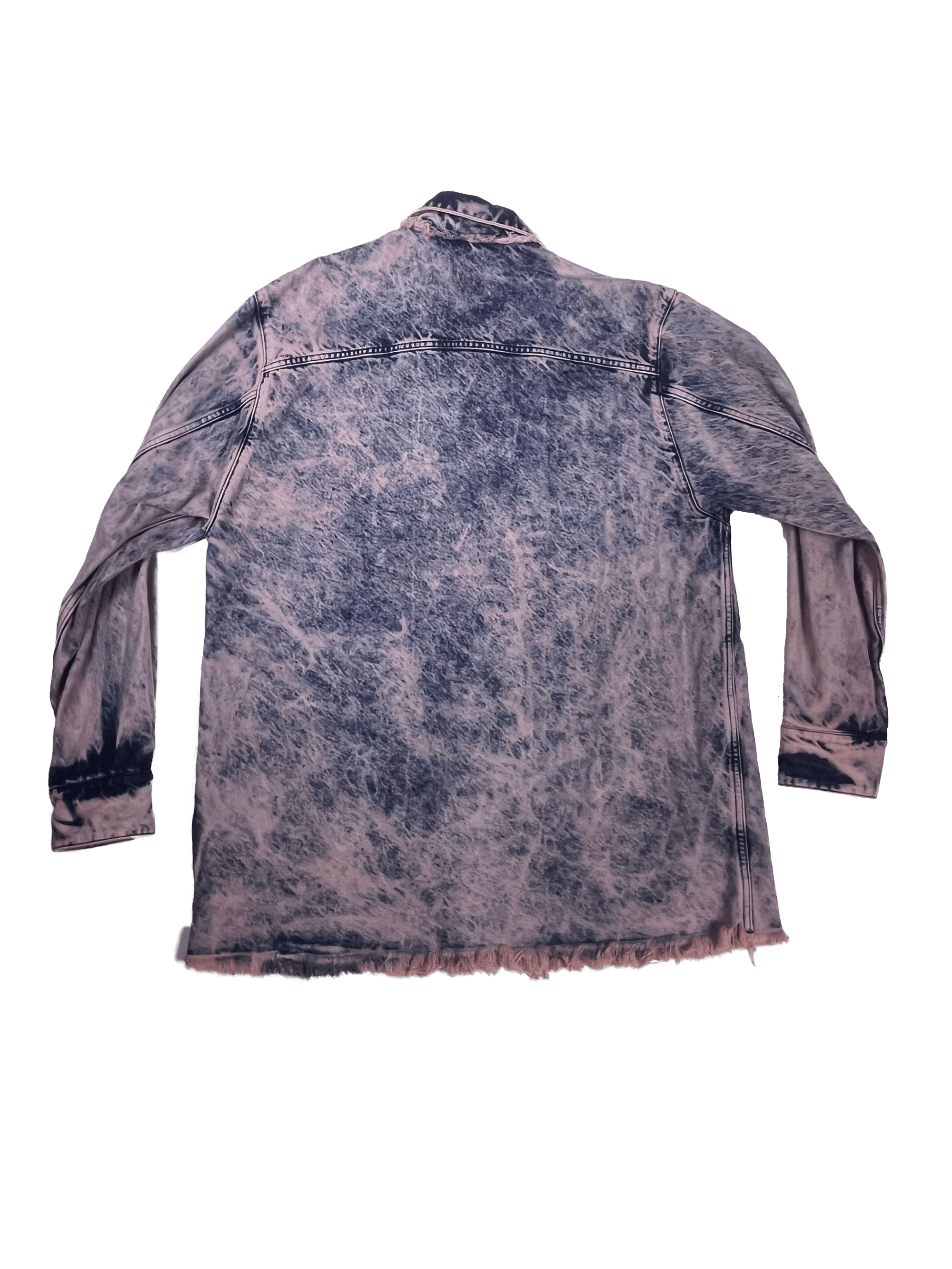 Pinkish purple & navy blue acid wash denim jacket from Marques Almeida