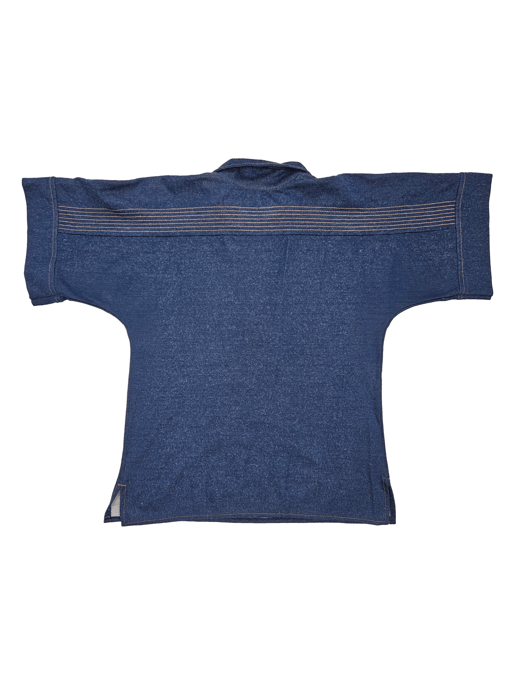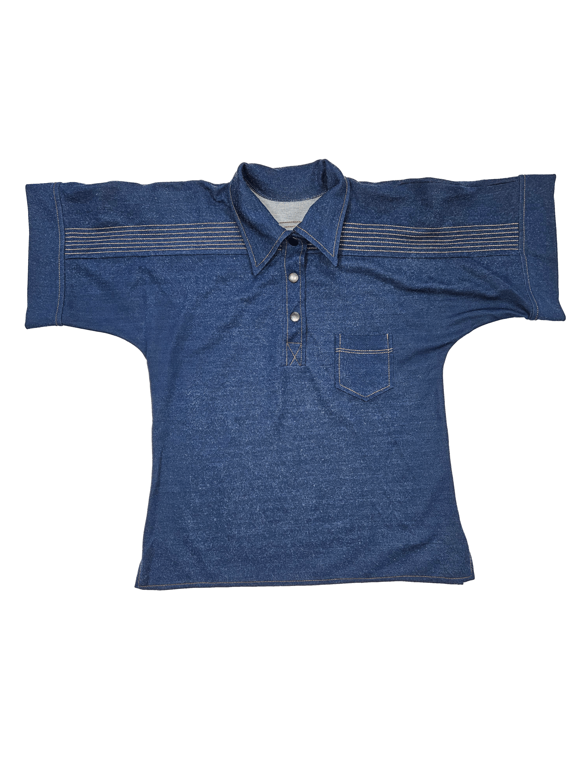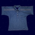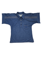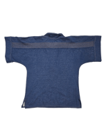 Blue button up polo shirt with contrast yellow stitching