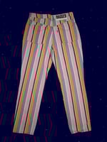 Pink, orange, blue and washed black striped jeans from The Ragged Priest