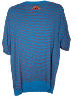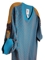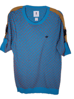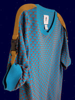 Orange and blue knitted t-shirt with contrast sleeve clips in brown