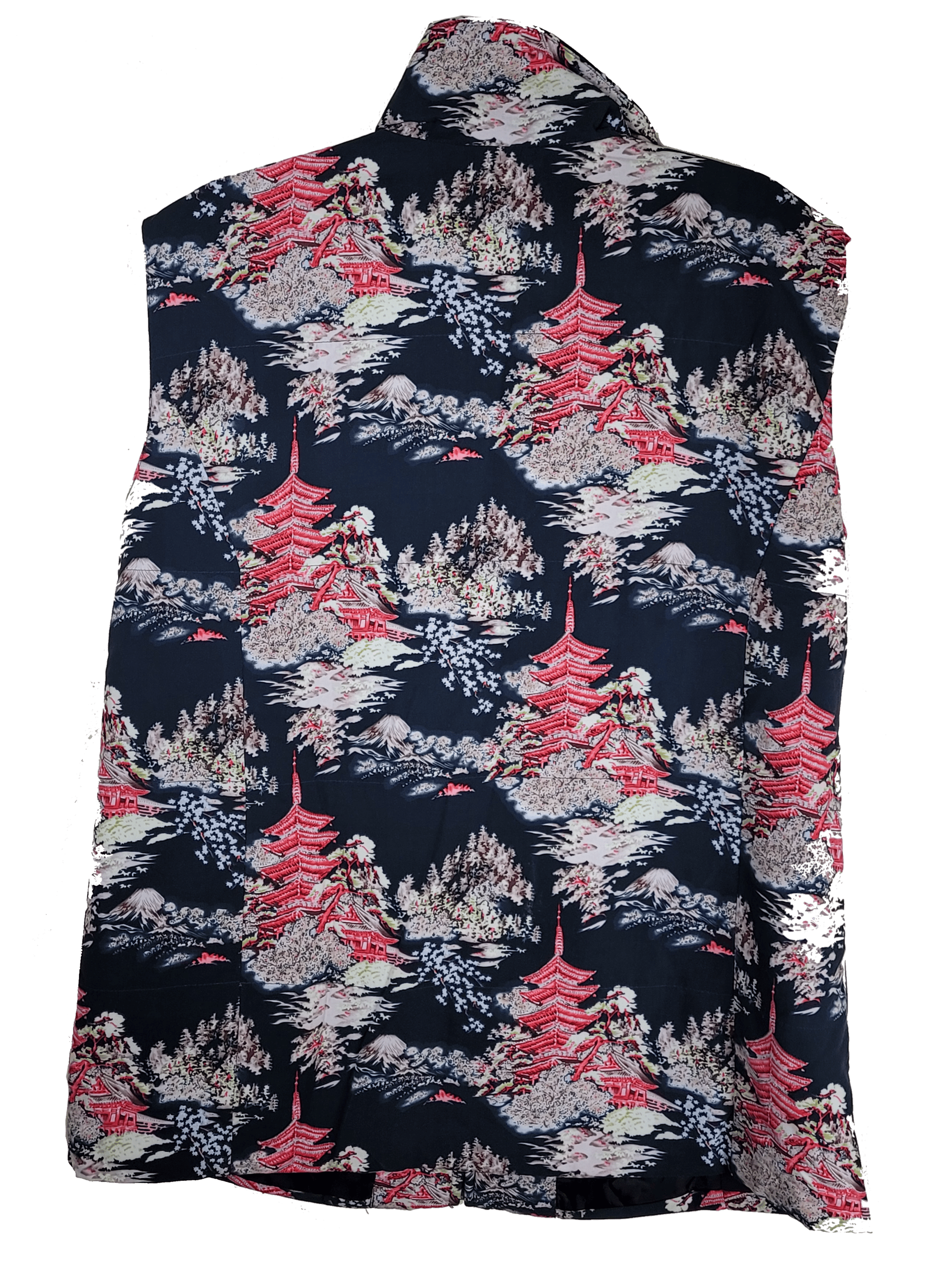 Cozy mock neck vest with beautiful all over pagoda and nature print