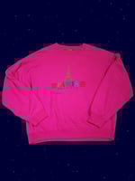 Boxy crewneck sweatshirt with rainbow embroidered print and a gold sparkly Eiffel tower on front